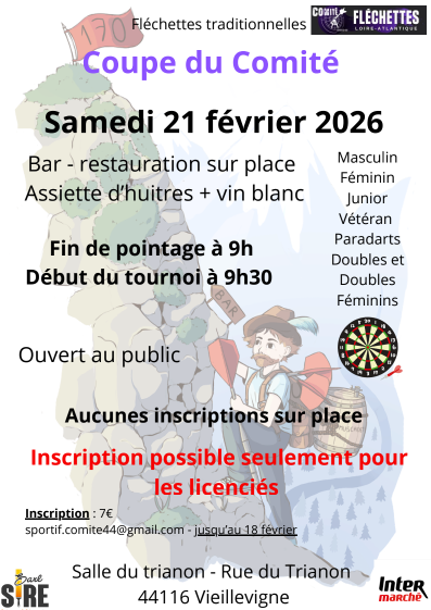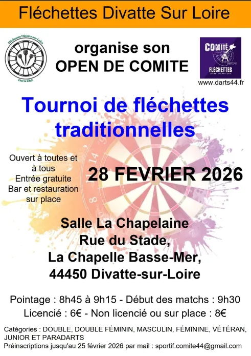 Open de Comité – FLECHETTES DIVATTE SUR LOIREBy Comité Fléchettes 44|2026-02-01T15:26:02+01:001 février 2026|
